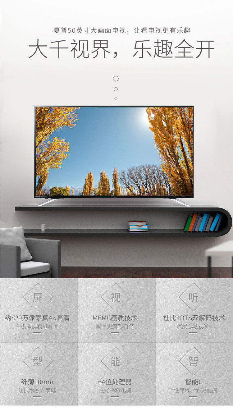 夏普(SHARP)50Z4808A 50英寸4K超高清智能网络液晶平板电视机