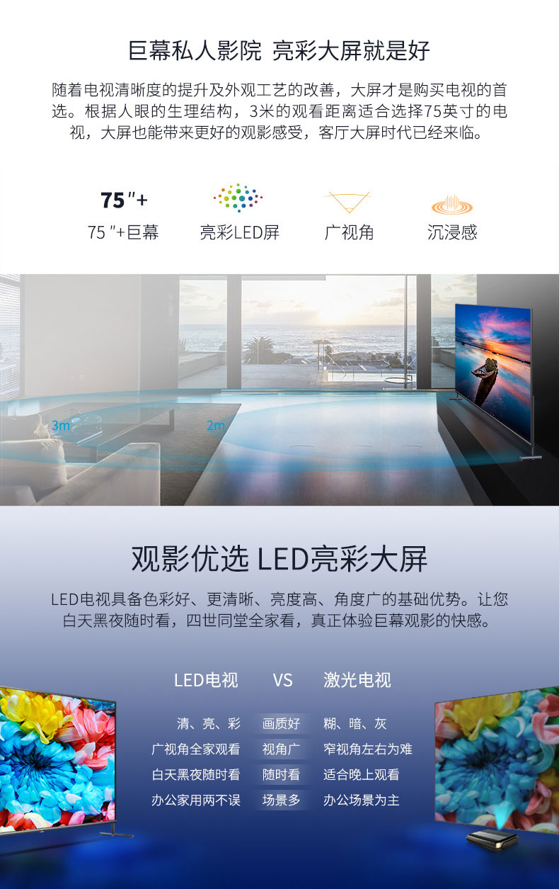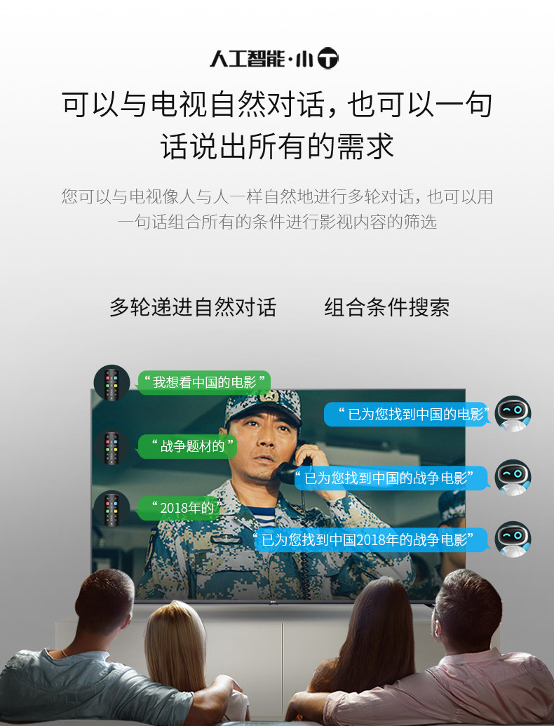TCL液晶电视机75英寸V2全面屏超薄高清4k语音遥控人工智能网络LED