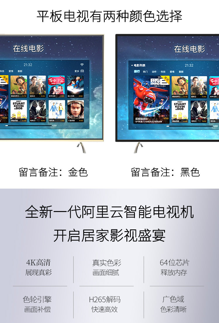 55寸4K高清46液晶42电视机50 60 70 65家用智能wifi曲屏网络75KTV